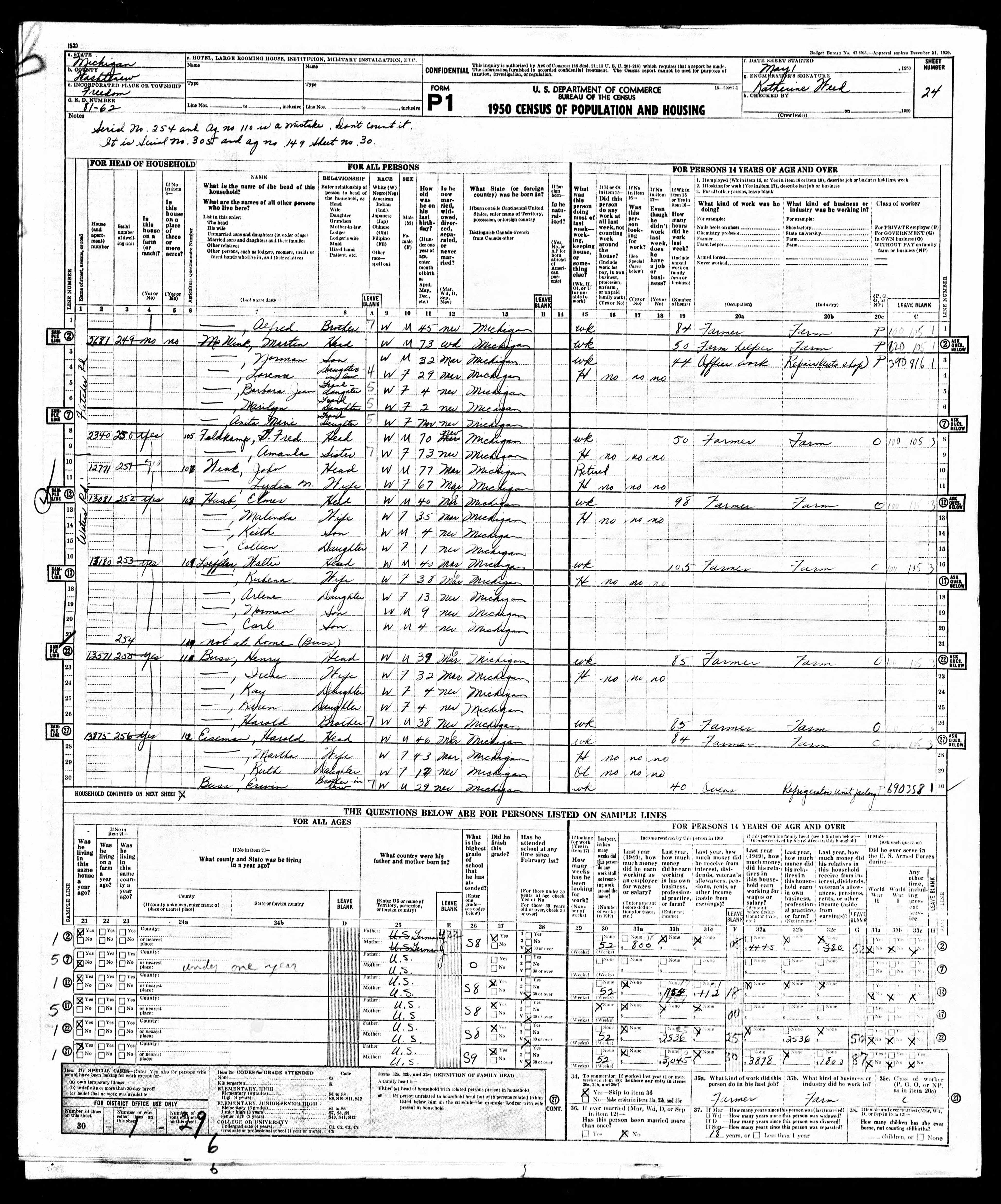 SOURCE INFORMATION: Bureau of the Census; Washington, D.C.; Seventeenth Census of the United States, 1950; Record Group: Records of the Bureau of the Census, 1790-2007; Record Group 29; Census Place: Freedom, Washtenaw, Michigan; Roll: 3218; Page: 24; Enumeration District: 81-62.