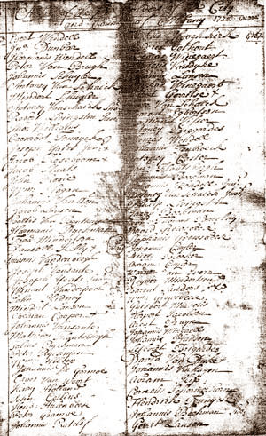 NOTE: Freeholders were defined as being qualified voters. In other words, this list represents a portion of the male householders who were counted as eligible to vote. All other free, adult, male, property owners are not on this list. (For instance, Johannes Hausz was not a freeholder until 1721, so he isn't included here; The Loescher family doesn't appear here, either.) A voter list is much less comprehensive than a census document.