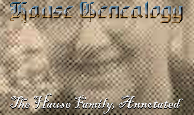 ¹ºFor a more complete genealogy of Electa Hause Williams's siblings by her youngest sister, Caroline Hause-Gage, click here; For every line descending from John Hause of Fayette and all of his siblings, click here.