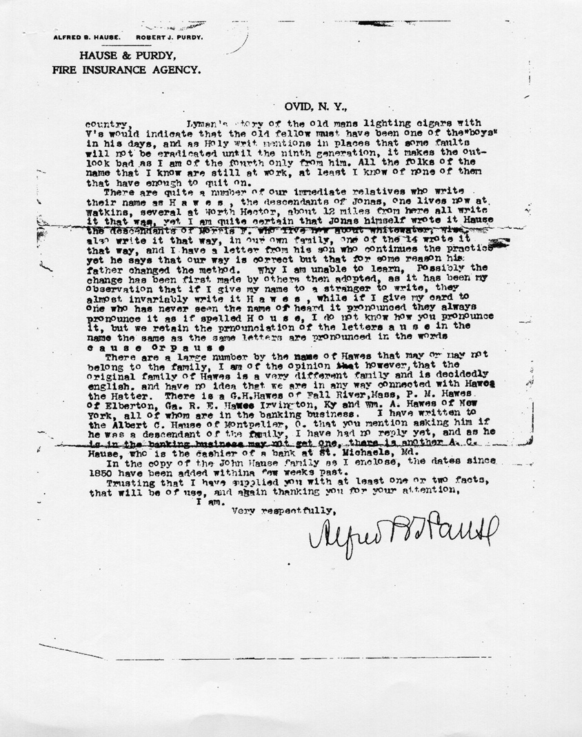A letter to James Dwight Hause,