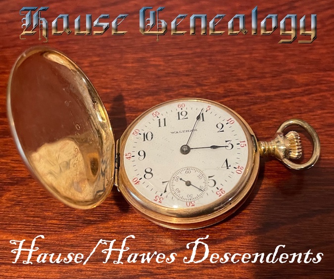 A very similar re-telling of the John Hause legend can be found in a newspaper story in the Watkins Express from Watkins Glen, Schuyler, New York, on 21 Jul 1904. The article is an interview with Dr. James P. Hawes, who (despite the spelling of his last name) was a great-grandson of William Hause, Sr., through his son, Jonas Hawes (1783-1861). The subject of the article, Dr. James P Hawes (Matthias D Hawes < Jonas Hawes < William < John < John Hause) practiced "allopathic medicine" in Valois, Hector, Schuyler, New York, where as a lifelong bachelor he lived with his sister, Isabella M Hawes (1843-1937). In his later years, James worked on the family genealogy with both Alfred B Hause and James Dwight "J.D." Hause (1866-1946) of Michigan. J.D. worked with his father at 'Hause and Son, Furniture and Undertaking.' James apparently liked J.D. quite a bit (or disliked undertaking), because he willed "namesake" James D Hause $500 in his will, "to be paid within three years, to be used for his education in any profession he may desire to follow." (Source: Watkins Express, 16 Jun 1915, Vol. LX, No. 50.) James P Hawes died of "disease of the stomach" on 24 Feb 1915 and is buried at Seneca Union Cemetery, Valois, Schuyler County, New York.