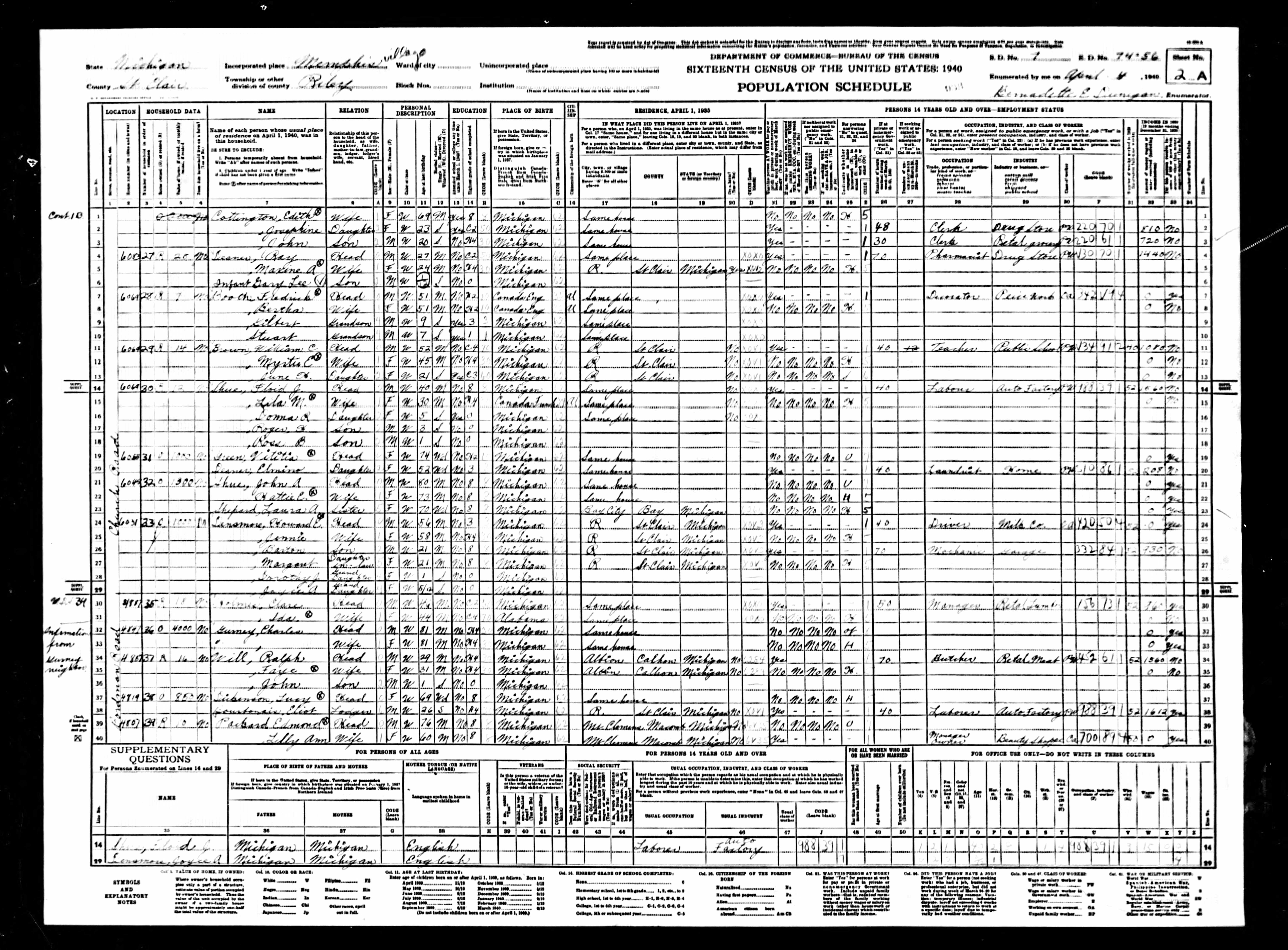 At the start of World War II, John enlisted 2 Mar 1942 at Fort Custer, Michigan. His son, Fredrick, remembers: "My father was an Army Air Corp member in WWII, stationed state side as a B17 Crew Chief. He taught new airmen in Florida and Washington. He became very ill after he was discharged (on 17 Nov 1945), and ended up in a Veteran's Hospital (1947-48). He was sent home and eventually felt well enough to return to work. After I was born he suffered a relapse and returned to the Veterans Hospital only to have the doctor tell him that he had sent him home to die the first time. He recovered after another lengthy stay and returned home. One of his Doctors gave him orders to not smoke, drink or consume pork. He followed those directions and lived to almost 73 years of age. He had Esophageal Cancer and suffered a stroke after surgury to remove the esophagus. Our family took him home and cared for him the last ten days of his life. He passed away just feet from where his own father had died 36 years earlier." John died on 19 Jun 1992 in Memphis, St Clair, Michigan.