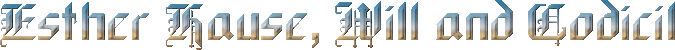 Seneca County Wills, 1853, p 186 - 193 Be it remembered that on the 13th day of October in the year One Thousand Eight Hundred and fifty three, John H. Hooker, one of the Executors named in the last will and testament of Esther Hause, late of the Town of Fayette, deceased, appeared in open court before the surrogate of the County of Seneca and made application to have the last will and testament and Codicil there to awarded while related to real and personal Estate proved and on such application this Surrogate did ascertain who were the heirs and next of kin of the said Esther Hause, deceased, and one of them appears to be a minor under the age of twenty one years having ... residing within this state a special there appointed in due form of law to take care of the interest of said minor in the matter of proving said will by an order entered for the deed purpose by said surrogate and the surrogate did therefore have a citation in due form of law directed to the said heirs next of kin and special guardian aforesaid by their respective (monies?). Stating their respective places of residence requiring them to appear before the Surrogate of said County of Seneca, or the Surrogate's office in Ovid on the fifth day of December 1853 at ten o'clock in the fore noon of that day to attend the probate of Said Will and Afterward on the said 5th day of December 1853. Satisfactory evidence was produced and presented to this Said Surrogate of the due Service of said Citation in (dis mode?) prescribed law and one that day John Williams and Electa his wife by Db C. Bloomer and D. Herron their Counsel appointed to oppose the probate of said will and Codicil and such from proceedings were therefore had on the fifth and Sixth day of December 1853. Said surrogate took the proof of Said Will and Codicil there to annexed and which is herein after (to the Ovid and he the?) Said Surrogate got to therefore adjudged said will and Codicil to be a good and valid will of real and personal Estate and to the proofs there of to be sufficient which said last Will and Testament Codicil and proofs are as follows that is to say--