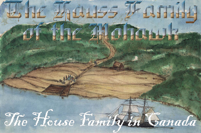 2. George House III was born on 19 Apr 1775 in New York. On 26 Oct 1794, he married Catharine Kilts in Palatine, Montgomery, New York. a. John House was born on 6 Jan 1795 and baptized at the Dutch Reformed Church of Stone Arabia ("Son of George Hauss and Catherine Kills. Sp. Philip Kills and Wife Elizabeth). He married Catharine Davis (b. 1795). b. Conrad House was born on 22 May 1796 in Palatine, Montgomery, New York. c. Maria House was born in 1799 in Palatine, Montgomery, New York. d. George House IV was born on 30 Sep 1802 in Palatine, Montgomery, New York. He married Elizabeth Shapley (1807-1892) and had the following children: Catharine J House (b. 1837) and Charles Heber Hauss (b. 1847). He died in Aug 1880 in Virgil, Cortland, New York. e. Philip House was born in 1805, in Mohawk, Montgomery, New York. f. Gerret House was born on 9 Aug 1810 in Johnstown, Montgomery, New York. He married Sarah, and had two daughters, Sarah and Gertrude. He died on 22 Jun 1900 in Buffalo, Erie, New York. g. Heinrich House was born on 2 Feb 1813 in Palatine, Montgomery, New York. It has been suggested that George II was a Loyalist during the Revolution (although there were a lot of Georges at that time) who served with Butler's Rangers throughout the war. On July 15, 1783, the holdings of George House of the Canajoharie District of Tryon County were confiscated and auctioned at a Sheriff's Sale. A claim by George to the British government, dated August 30, said he joined up in 1777, and served all the War under Col. Butler in the Rangers; Had some Lands on the Mohawk, had no Lease but had lived on them 15 years before the War, and had built a house. He only Claims for the Buildings 24£, he had 4 horses & 2 Colts, Utensils, furniture, grain in the ground, all of which he left behind. He was the awarded land in Lincoln Co., Ontario, Canada, by the British government.