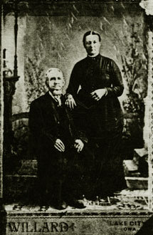 3. Abbie Catherine born Feb. 2, 1834 married Aufus Waldron. 4. Isaac born May 12,1837 died young. 5. Darias died young. 6. Squire born Dec. 4, 1838 married Cornelia Orendorf and second Mrs. Klock. 7. Rodney born May 28, 1840 married Emily Staela. 8. Harriet born March 4, 1842 (pictured at right) married Hamilton Steele and a son Claude A. lives in Ilion at present. 9. Melchar, born Mar. 18, 1846 died young. 10. Matthew born Oct. 23, 1848 married Nancy Casler, died March 9, 1880. 11. Dially Ann born Dec. 19, 1849 married Adrian Lewis, Aug. 7, 1867, second Adelmar Paster.