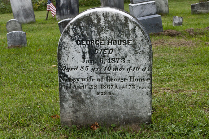 14. Manuel (Emanuel, b. 1838) died in the Civil War. He enlisted in Company I, New York 44th Infantry Regiment on 17 Oct 1861. He mustered out on 22 Apr 1862 at Old Point Comfort, VA, and was killed that day. He is buried at Hampton National Cemetery, Cemetery Road At Marshall Avenue, Hampton, VA 23669; Section B Site 4182. George House married second Betsy Thorp of Jordanville but they soon agreed to live apart. George and Nancy are buried in the Columbia cemetery.