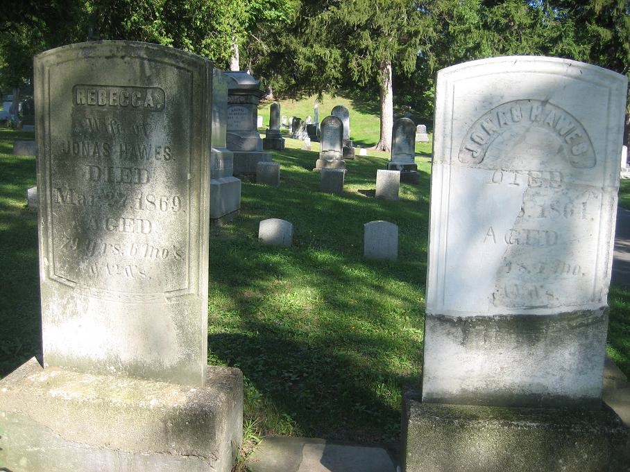 Jonas and Rebecca Hawes (Hause) are buried at Seneca Union Cemetery in Valois, Schuyler County, New York.