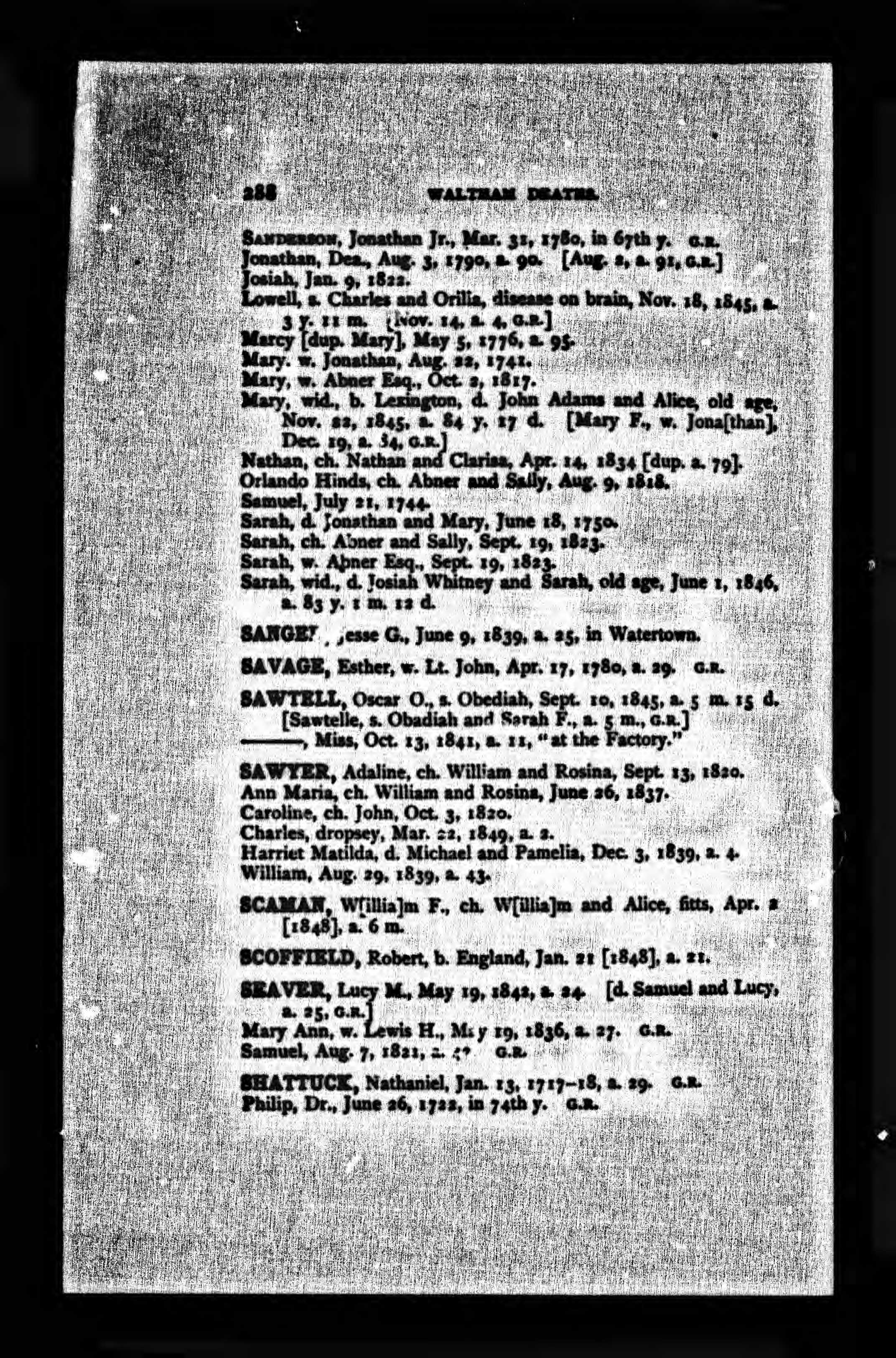 Clara Barton, founder of the Red Cross, is a descendant. More importantly to us, their daughter ANNA SHATTUCK was born on 08 Dec 1677 in Watertown. She married WILLIAM SANDERSON, JR., and died after 1740.²